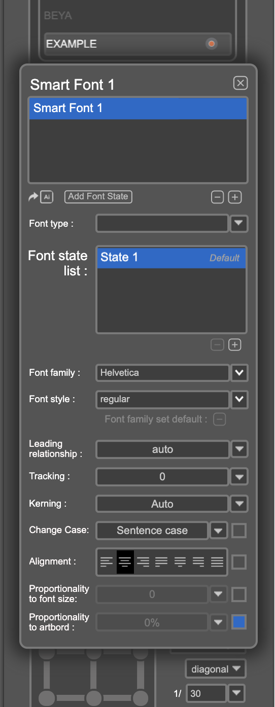 The first font will be the default. For the smart font to change according to either point size or relationship to its respective art board, you must create a “FONT STATE.”